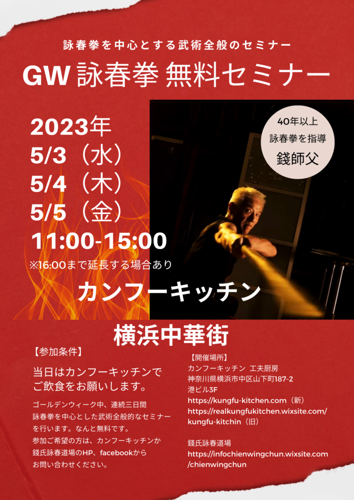GW詠春拳 無料セミナー、沢山の方からお申込み頂きまして、ありがとうございます!